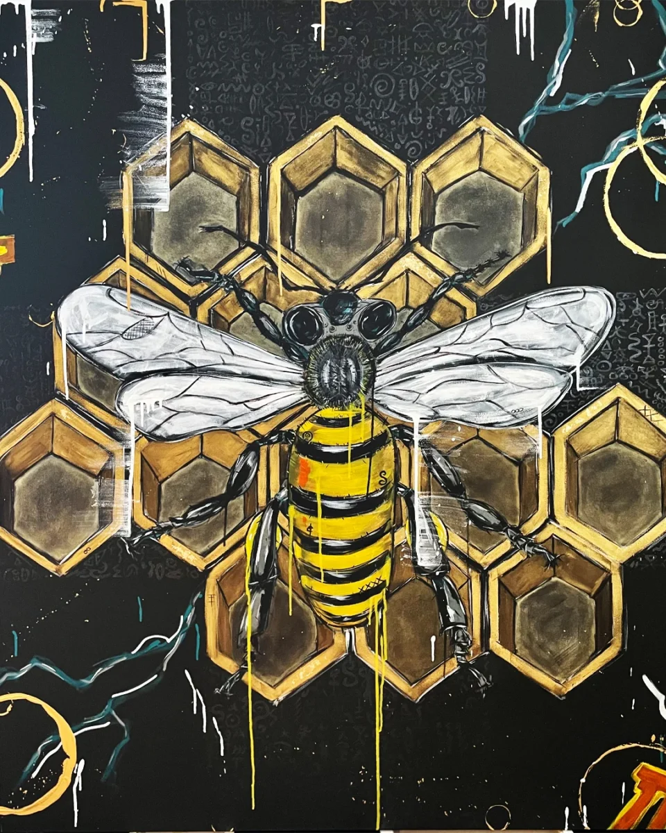 Voici “L’Abeille”, un crewneck noir unique inspiré de l’œuvre de Verssastyle. L’artiste a choisi de revisiter l’abeille avec une touche abstraite et moderne, symbole de travail, de persévérance et de communauté.